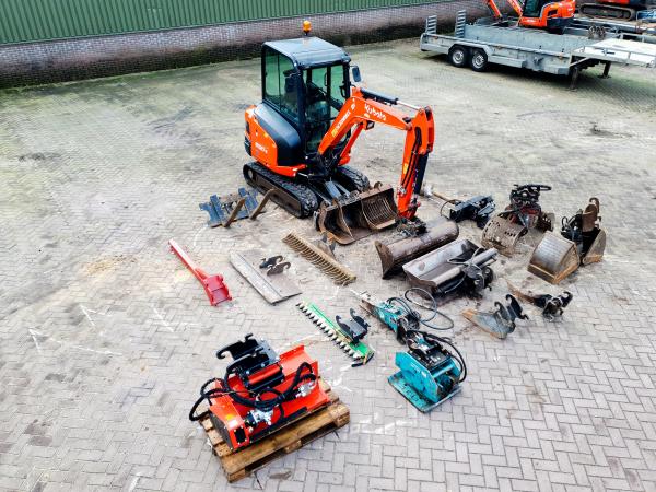Minigraver Alle machines2,8 tonnerincl. 3 bakken Met hydraulisch snelwisselsysteem Prijs per dag: 130,00Prijs per week: 500,00prijzen zijn exclusief brandstof Vanaf januari 2024 rekenen we 6% verzekering.Neem contact met ons op